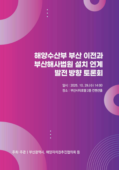 부산시 '해수부 이전과 해사법원 설치 연계' 발전 방향 토론회 2025.10.29 08:50