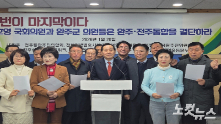 완주·전주 통합 찬성 단체, 안호영 의원에 "통합 결단" 촉구 2026.01.20 14:50