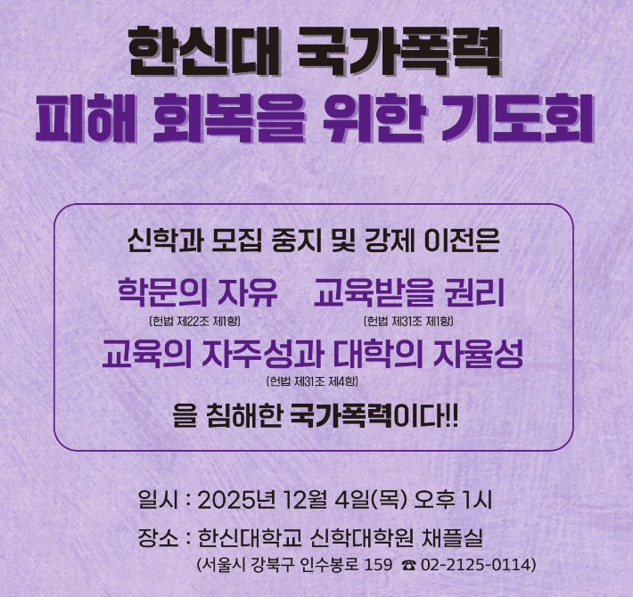 '한신대 신학과 강제 모집 중단' 진실 규명 본격화 2025.12.01 13:40