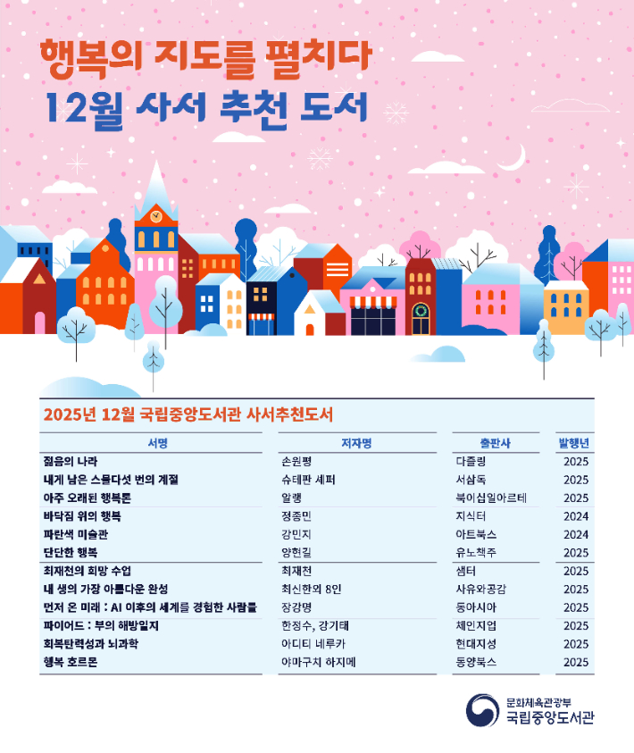 '행복'을 탐구하는 연말…국립중앙도서관 사서추천도서 12권 선정 2025.12.01 16:11