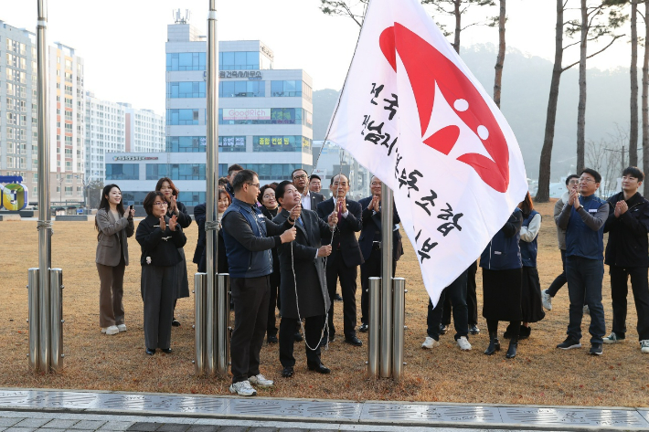 고흥군 노사, 전남 최초 노조 깃발 청사 게양 2025.12.23 14:55