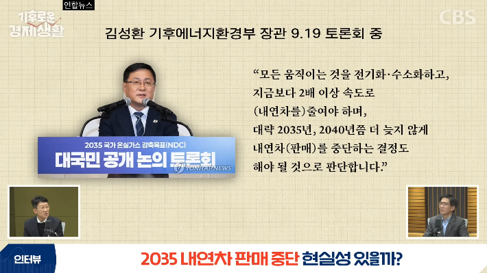 ◆ 홍종호> 제가 궁금한 건, 현재 이재명 정부 하에서 기후에너지환경부가 새로 출범하면서 NDC 논의가 계속되고 있지 않습니까? 2035년까지 감축 목표를 높여야 한다는 그 논의 과정에서 기후부가 2035년도 신차 판매는 탄소 배출 안 하는 차로 가야 한다고 한 것이잖아요. 상당히 큰 정책 전환인데 기후부가 이걸 어느 정도 진지하게 검토하고 있는지에 대한 교수님의 판단을 여쭙는 거거든요.