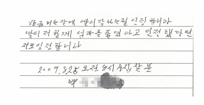◆ 손수호> 그렇습니다. 아버지도 마찬가지인데요. 지능 지수가 높지 않았고 한글도 잘 쓰지도 못했어요. 읽지도 못하고. 자필 진술서를 보면 그냥 보고 그냥 따라서 그림 그린 것 같이 느껴지기도 합니다.