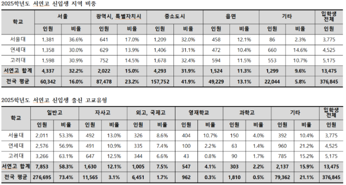 서·연·고 신입생 중 서울 출신 32%…전국 대학 평균의 2배 2026.01.23 11:07