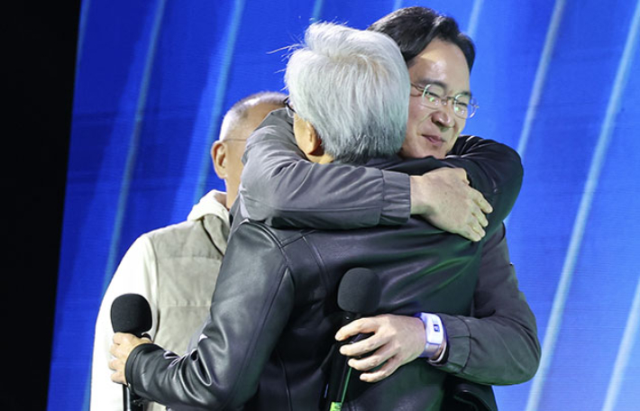 젠슨 황, 이재용 껴안고 정의선과 어깨동무…"내일 좋은 소식 발표"