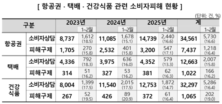 소비자원 "설 명절 전후, 항공권·택배·건강식품 관련 피해 주의"