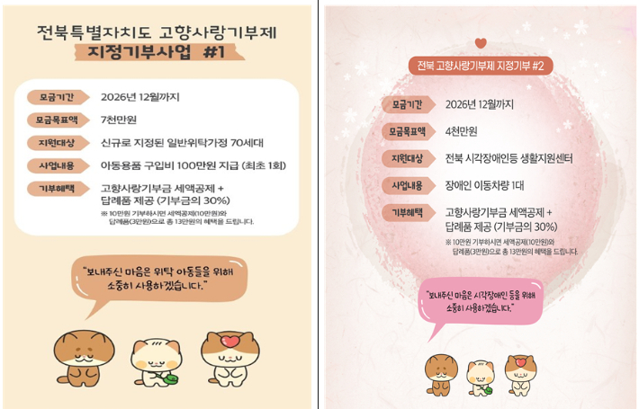 전북도, 고향사랑 지정 기부 사업 시작…"복지와 기부 연결"