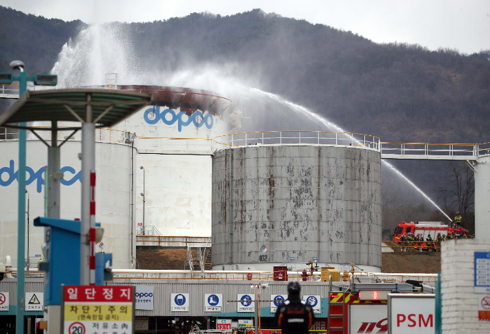 경산 송유관공사 옥외 유류탱크 화재 3시간 만에 진화