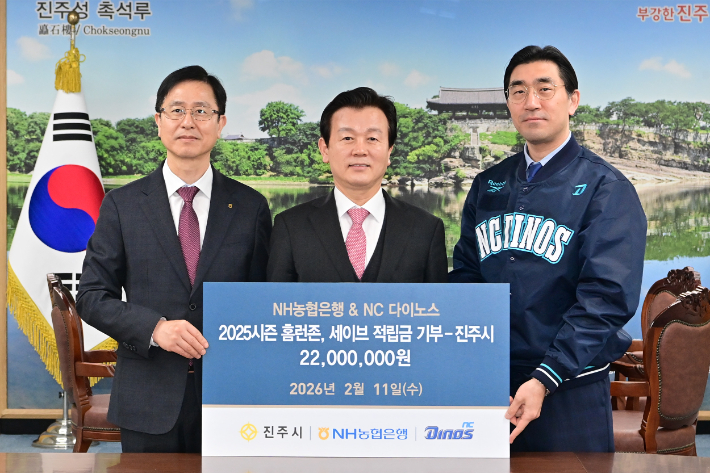 농협은행-NC, 진주시에 홈런존·세이브 적립금 전달