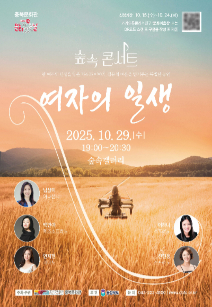충북문화재단, 오는 29일 숲속콘서트 '여자의 일생' 무료 공연