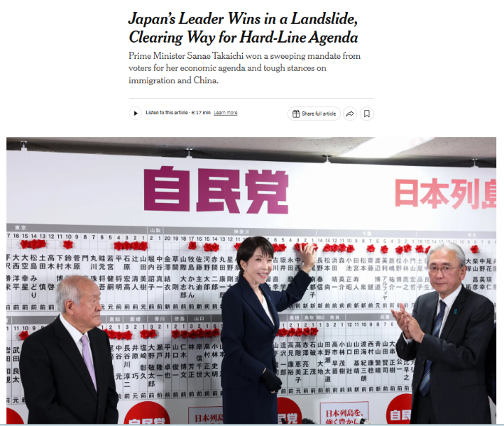 다카이치 압승…미국은 웃었고 중국은 찌푸렸다
