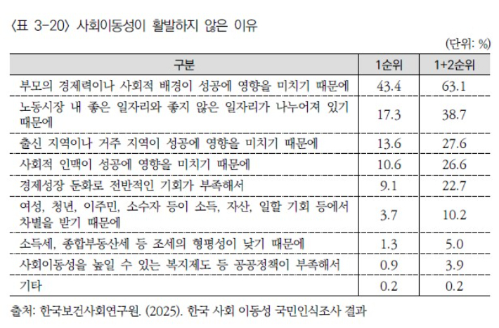 성인 4명 중 1명만 '대한민국, 계층이동 활발' 생각해