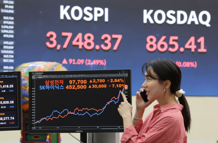 삼성전자 9만 7700원 5년여만에 신고가…코스피 3748 사상 최고치